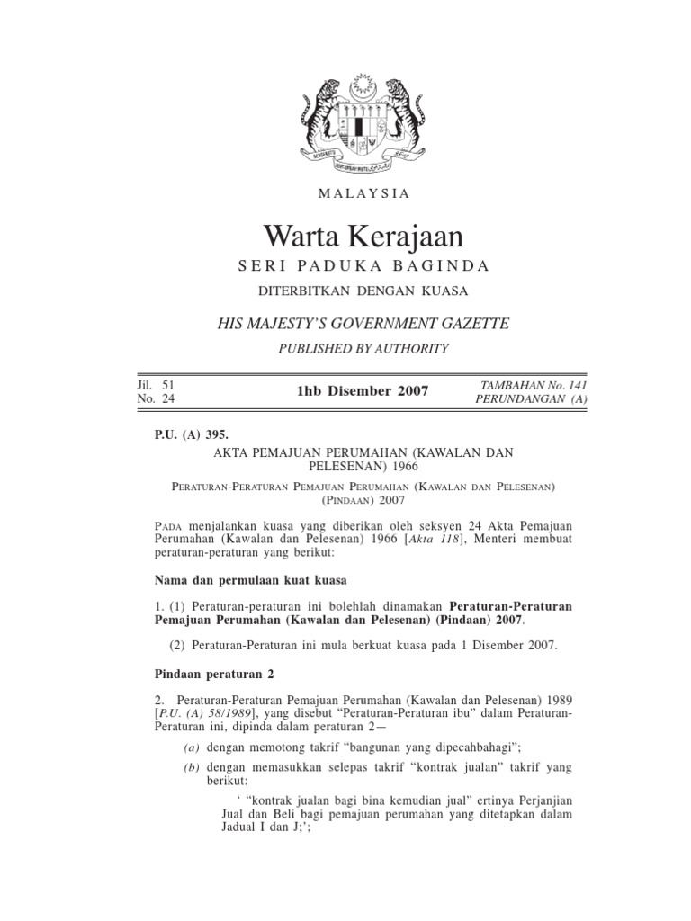 Jabatan perumahan negara ada kemaskini senarai pemaju perumahan bermasalah. Tajuk panjang suatu akta untuk mengadakan peruntukan bagi kawalan dan pelesenan urusan pemajuan perumahan di semenanjung malaysia. Akta konvensyen mengenai penyelesaian pertikaian pelaburan 1966. Akta pemajuan perumahan pdfakta pemajuan perumahan pdf. Rm no star yet, give yours!.